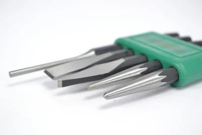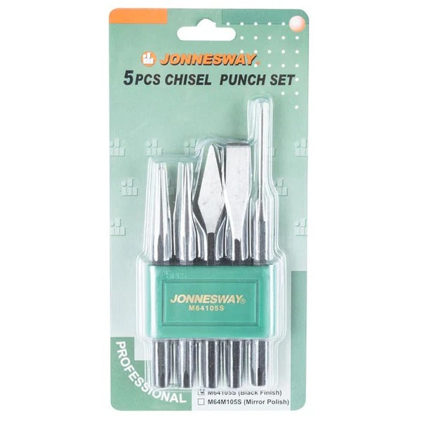 JONM64105S Juego de cinceles, botadores, puntos y punzones, estuche plástico con 5 piezas.
